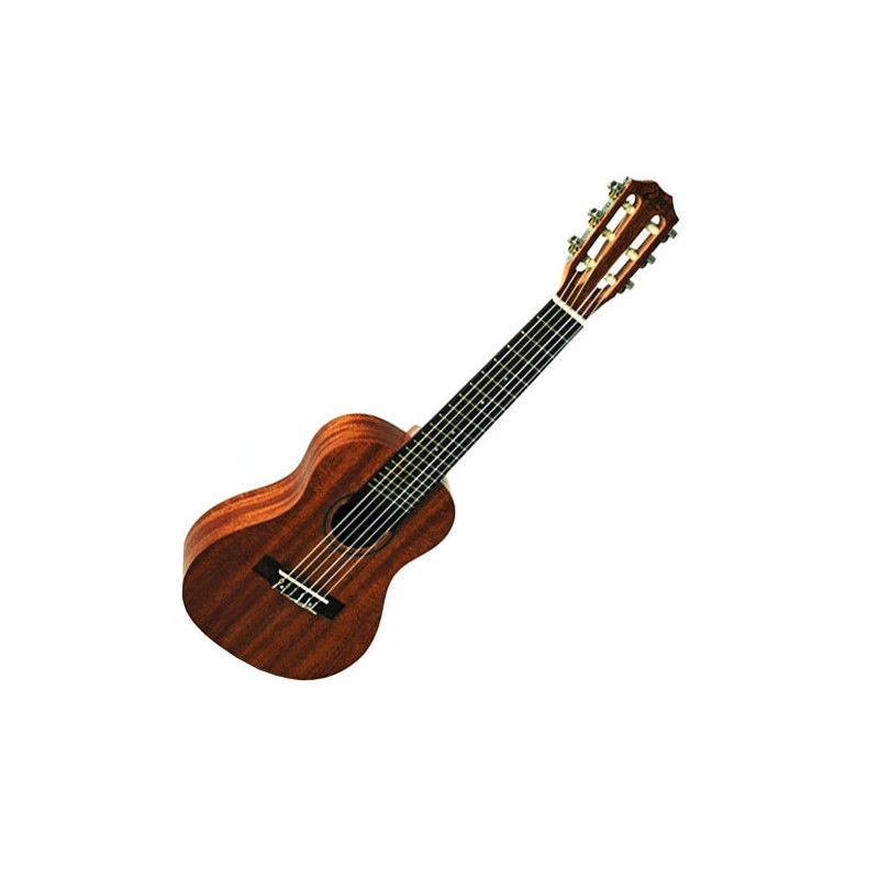 GUITALELE NATURALE Cercando di ampliare al massimo l'offerta di strumenti musicali, non poteva mancare nel catalogo Eko una sezione dedicata all'Ukulele, strumento comunemente associato alle Hawaii che fornisce all'ascoltatore una sensazione di relax e benessere. Il Guitalele fonde le classiche sei corde di una chitarra con la trasportabilità di un Ukulele. Solitamente questo strumento viene accordato in ADGCEA (dalla sesta corda alla prima), corrisponde quindi a una chitarra con il capotasto al V tasto. Questo strumento è perfetto come strumento da viaggio, oppure per avvicinare i bambini alla musica. Caratteristiche principali •Tastiera 19 Tasti •Finitura: Naturale