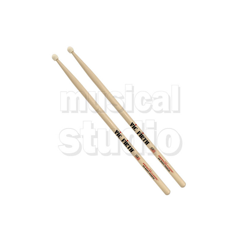 Bacchette in american hickory - Modello Soft Touch 5A - Punta in feltro - L = 16" | Dia. = .565" . Our classic 5A design‚ featuring a dense felt head. The result is an extremely well balanced stick with a sound that is warmer than a conventional wood tip. A great choice for drum set‚ multi-percussion or percussion ensemble settings.