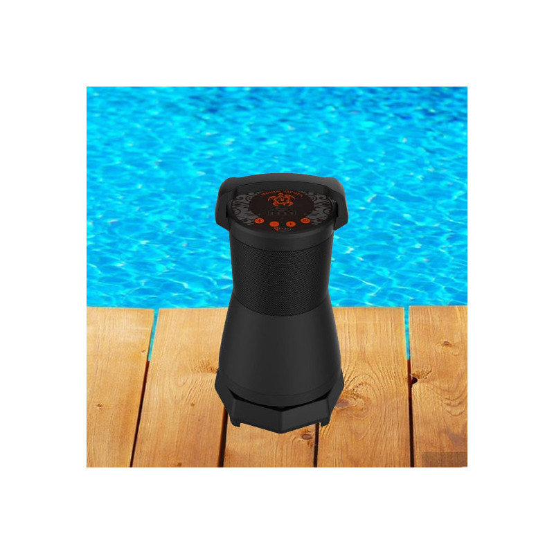 Diffusore portatile da esterni. IPX5 Waterproof ideale per diffondere l'audio a 360 a bordo piscina. Bora Bora è un diffusore mobile indipendente per l'uso in ambienti esterni o interni. BoraBora è totalmente compatibile con qualsiasi dispositivo Bluetooth® e la tecnologia NFC ne consente il collegamento automatico semplicemente avvicinando fra di loro i dispositivi. L'ingresso Aux può essere utilizzato per collegare altri dispositivi sprovvisti di Bluetooth.8 ORE DI SERENITÀ. Con sole 2 ore di carica, BoraBora suonerà per ben 8 ore. Funziona anche in modalità alimentata grazie al trasformatore in dotazione. UN RESPIRO PROFONDO DI ARIA FRESCA. BoraBora è resistente agli agenti atmosferici e riproduce la musica con un angolo di 360° per rimanere sempre al centro dell'attenzione. Dati tecnici Power output 60W RMS 4x 2", 5W speakers 1x 5", 40W speaker V4.0 AVRCP Bluetooth®, CSR compression, APT-X Wireless range: 10 m - Class 2 NFC Compatible - easy pairing Auxiliary input: Stereo 3.5 Mini-Jack Control buttons : Power; Volume -/+; Bluetooth® pairing; Battery indicator Battery life: 8 hours Charge the battery in only 2 hours Lithium 14.8 V 2600mA battery Frequency response : 60Hz-15kHz Max SPL at 1 m : 95 dB IP level : IPX5 (weatherproof) Weight : 2.9 kg Dimensions : Diam 195 x 370 mm