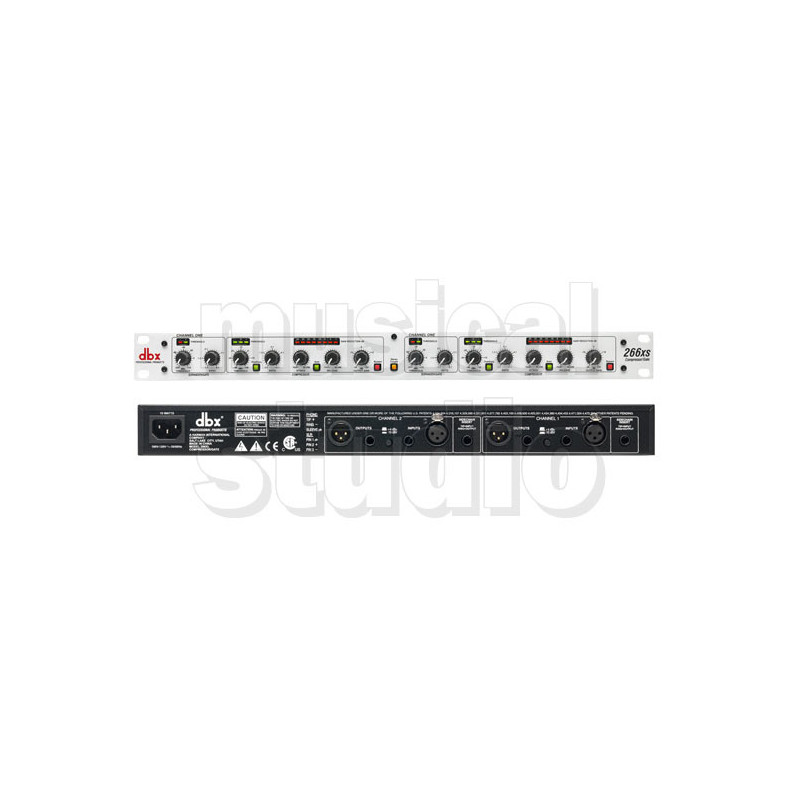 L'aggiunta di un DBX266XS Compressor / Limiter / Gate al tuo suono dal vivo o in studio ti permette avere più controllo della dinamica per creare un suono più pulito e professionale. Avere un compressore nella vostra catena audio dà la possibilità di appianare livelli disomogenei, aggiungere sustain alle chitarre e dare un suono più profondo alla tua batteria. Inoltre aggiunge una maggiore chiarezza alle voci facendole risaltare rispetto agli strumenti circostanti. Specifiche tecniche INPUTS •Connector: 1/4" TRS, female XLR (pin 2 hot) •Type: Electronically balanced/unbalanced, RF filtered •Impedance: 40kO balanced, 20kO unbalanced •Maximum Level: >+22dBu Balanced or Unbalanced OUTPUTS •Connector: 1/4" TRS, female XLR (pin 2 hot) •Type: Impedance-balanced/unbalanced, RF filtered •Impedance (+4dBu): 100O balanced, 50O unbalanced •Impedance (-10dBu): 1kO balanced, 500O unbalanced •Maximum Level: >+21dBu balanced/unbalanced into 2kO or greater; >+18dBm balanced/unbalanced (into 600O) SIDECHAIN INSERT •Connector: 1/4" TRS Phone, Normalled: Ring = Output (send); Tip = Input (return) •Impedance: Tip = >10kO (Input), Ring = 2kO (Output) •Maximum Level: Tip = >+22dBu (Input), Ring = >+20dBu (Output) COMPRESSION •Threshold Range: -40dBu to +20dBu •Threshold Characteristic: Selectable OverEasy® or hard knee •Compression Ratio: 1:1 to Infinity:1 •Attack Time: Scalable Program-Dependent AutoDynamic™ •Release Time: Scalable Program-Dependent AutoDynamic™ EXPANDER/GATE •Threshold Range: -60dBu to +15dBu •Expansion Ratio: 1:1 to 4:1 •Attack Time: <100µSec •Release Time: Program-Dependent SYSTEM •Bandwidth: 0.35Hz - 90kHz, +0/-3dB •Frequency Response (Flat): 20Hz - 20kHz; +0/-0.5dB, •Noise: <-93dBu, unweighted (22kHz measurement bandwidth) •THD + N: <0.2%; Any Amount of Compression @1kHz •Intermodulation Distortion: <0.2% SMPTE •Dynamic Range: >114dB, unweighted •Interchannel Crosstalk <-95dB, 20Hz to 20kHz •CMRR: >40dB, typically >55dB at 1kHz •Stereo Coupling: True RMS Power Summing™ POWER •Power Consumption: 15 Watts Maximum •Operating Voltage: 100 VAC 50/60Hz; 120VAC 60Hz; 230 VAC 50/60 Hz •Operating Temperature: 0°C to 45°C (32°F to 113°F) PHYSICAL •Dimensions: 1.75" x 5.75" x 19" (4.45 cm x 14.6 cm x 48.26 cm ) •Weight: Net weight: 4.84 lbs (2.19 kg) •Shipping weight: 6.6 lbs (2.99 kg) •Note*: 0dBu = 0.775Vrms