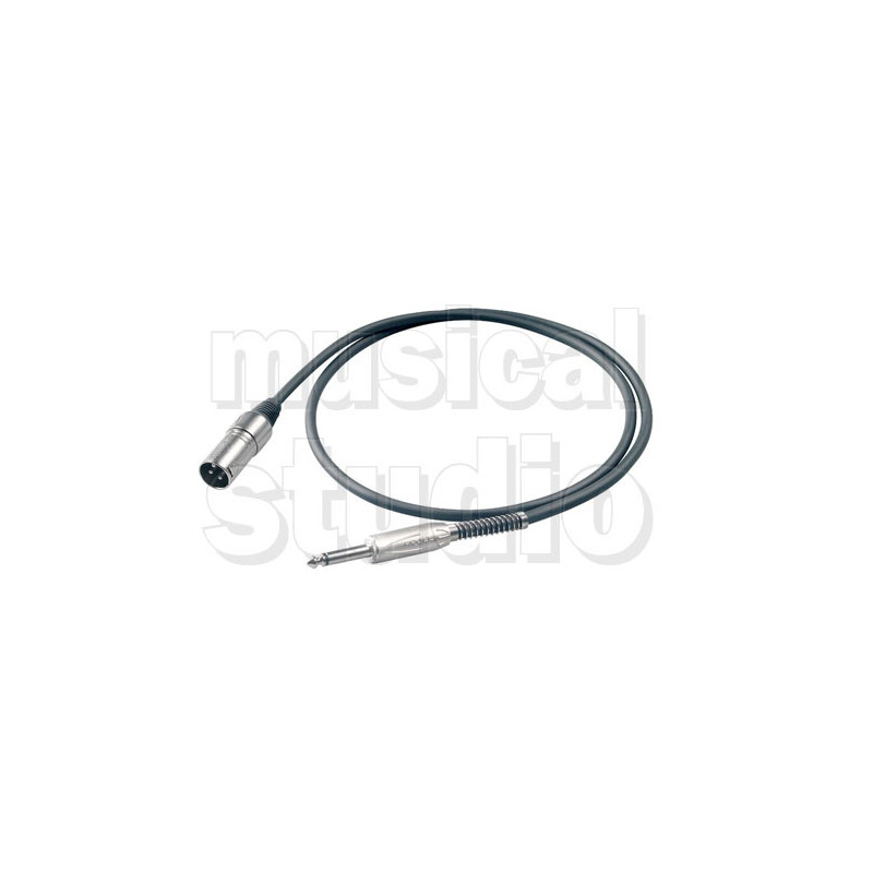 Cavo professionale per microfono con connessioni in metallo PROEL - spina volante XLR 3 poli -> jack mono Ø 6.3 mm. 3MT.