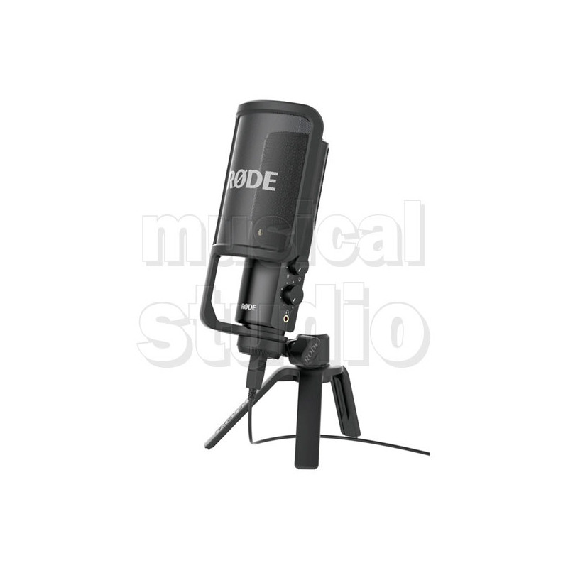 MICROFONO CARDIOIDE A GRADIENTE DI PRESSIONE USB Il Rode NT-USB è un microfono side-address altamente versatile ideale per il canto, la registrazione e le performance musicali, oltre ad applicazioni vocali come podcasting e voice-over. È totalmente compatibile con tutte le applicazioni di registrazione tradizionali sia su Windows che Mac OS, così come Apple iPad utilizzando RØDE Rec, GarageBand, o qualsiasi altra applicazione di registrazione che accetti un microfono esterno. L'Utilizzo su Apple iPad richiede un adattatore per il collegamento USB idoneo, come l'Apple Camera Connection Kit. L'NT-USB dispone di un uscita jack stereo (3,5 mm) a latenza zero per cuffie, che consente di monitorare il microfono in tempo reale, con manopole per regolare il livello di monitoraggio e di mix tra audio del computer / iPad e l'ingresso microfonico. E' incluso un filtro antipop che si inserisce sulla base del microfono, posizionando il filtro alla distanza ideale dalla capsula. È previsto anche uno stand di alta qualità per il montaggio con filettature standard da 3/8", supporto da tavolo che permette di posizionare l'NT-USB ad una altezza comoda su un tavolo, e una custodia per conservare il microfono quando non è in uso. Caratteristiche principali •Principio acustico: Gradiente di pressione •Elettronica attiva: Convertitore di impedenza JFET con buffer di uscita bipolare, convertitore A/D a 16 bit 48kHz •Capsula: 0,50" •Diagramma polare: Cardioide •Risoluzione: 16 bit •Address type: Side •Gamma di frequenza: 20Hz - 20kHz •SPL massimo: 110dB SPL (@ 1kHz, 1% THD in 1k carico) •Alimentazione: bus USB •Uscita: uscita USB •Peso: 520g •Dimensioni: 84mm x 62mm x D50mm