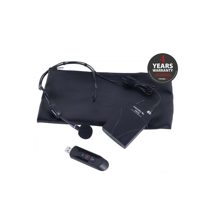 MICROFONO AD ARCHETTO WIRELESS CON TRASMETTITORE BODYPACK E RICEVITORE 2.4GHz I sistemi U24 USB sono microfoni wireless professionali in grado di offrire una trasmissione ad alta definizione e senza interferenze, grazie alla tecnologia 2.4GHz, che utilizzano un ricevitore USB ultra compatto. Il ricevitore è alimentato tramite la presa USB e include una doppia interfaccia audio per la connessione automatica ad apparati sia analogici che digitali. Può essere collegato senza bisogno di installare driver a qualunque computer PC o Mac per registrare direttamente tramite la vostra applicazione DAW preferita. Utilizzando un apposito adattatore USB-A può anche essere collegato a dispositivi portatili IOS o Android per applicazioni digitali standalone. Infine, può essere collegato ad qualunque apparato Proel dotato di ingresso USB wireless (come i diffusori V FREE e V WAVE) per utilizzare un microfono wireless professionale immediatamente e senza l'ingombro di cavi. La tecnologia wireless digitale 2.4GHz offre una qualita audio superiore e la massima affidabilità, evitando interferenze da stazioni televisive e altri trasmissioni broadcast. Il trasmettitore si accoppia automaticamente al ricevitore e la scelta intelligente delle frequenze assicura una connessione stabile. U24B include un trasmettitore bodypack di alta qualità e un microfono headset. Caratteristiche ricevitore U24 Gamma di frequenza: 2.404 - 2.476GHz Sensibilità RF: -78dB Risposta in frequenza: 50Hz - 15kHz Campionamento: 16 bit @ 38,5kHz THD: <0,05% @ 1KHz Rapporto SN: >85 dB Ritardo di trasmissione: 18,3ms Connettore di uscita: USB-A Livello di uscita audio: 4dBu (1000mV) Corrente: < 55mA Temperatura di funzionamento: 10°C - 50°C Dimensioni: 94 x 26 x 9,5mm Programma di Garanzia di 4 ANNI Caratteristiche trasmettitore WM24B Gamma di frequenza: 2.404 - 2.476GHz Potenza di trasmissione: <10 dBm Distanza di trasmissione: fino a 25 m (spazio aperto) Risposta in frequenza: 50Hz - 15kHz Campionamento: 16 bit a 38,5kHz THD: <0,05% @ 1kHz Rapporto SN: >85dB Ritardo di trasmissione: 18,3ms Connettore di ingresso: TA4M Batteria di alimentazione: 2x 1,5V alcalina AA Tempo di funzionamento: fino a 20 ore Dimensioni: 62 x 85 x 22mm Caratteristiche microfono headset HCM-38 Tipo di trasduttore: Piastra posteriore e elettrete Modello polare: Cardioide Risposta in frequenza: 80Hz - 12kHz SPL max: 110dB Impedenza nominale: 680 Ohm Alimentazione: 1,5-3V CC / 0,05mA Cavo: 1,2m Connettore: Mini XLR 4-pin Peso: 51g