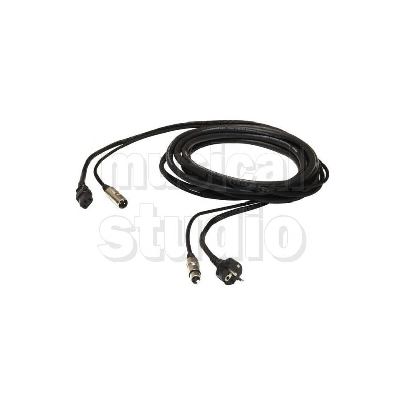 CAVO DI ALIMENTAZIONE E SEGNALE XLR - SCHUKO 5MT Cavo professionale Phono-Rete per il collegamento di diffusori acustici attivi. Cavo 3x 1,5 + 2x 0,35 con connessioni presa volante XLR 3P più spina volante Schuko 6A, spina volante XLR 3P più presa volante standard EC 3P. Caratteristiche •Lunghezza: 5m •Colore: Nero