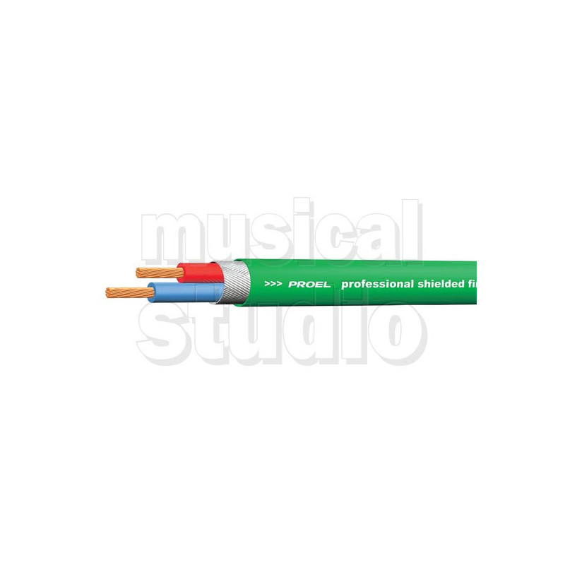Cavo flessibile schermato a 2 conduttori twistati per casse acustiche con guaina antifiamma in PVC. 2 X 1,50 Campi di applicazione Connessioni per installazioni audio fisse Conduttori Rame 16 AWG = 29x0.25 mm (1.50 mm²) Rispondente alla normativa IEC 228 Class 5 Isolamento PVC ø 2.30 mm Blu/Rosso Schermo Rame stagnato a treccia 100% Guaina PVC flessibile resistente alla fiamma 60 shore ø 6.60 mm Rispondente alla normativa IEC 332.2 Resistenza conduttore14 Ohm/Km @ 20°C Capacità conduttore/conduttore105 Pf/mt @ 1 KHz Capacità conduttore/schermo 180 Pf/mt @ 1 KHz Temperatura di esercizio-20°C / +80°C Tensione di lavoro 3 KV Raggio minimo di curvatura 4x su tutto il diametro Peso79 Kg/Km Colori disponibili Verde RAL6017