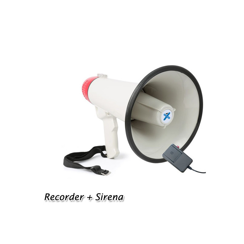 Potente megafono con amplificatore incorporato da 40W e microfono staccabile anti feedback. Include funzione di registrazione, cinghia regolabile, funzione sirena e controllo del volume. Copertura da 0.7 a 1km a seconda delle condizioni dell’ambiente. Power max. 40W Range 0.7 – 1km Dimensions 190mm x 330mm (Dia x L) Weight 1.3kg Battery 9V (6x D-cell).