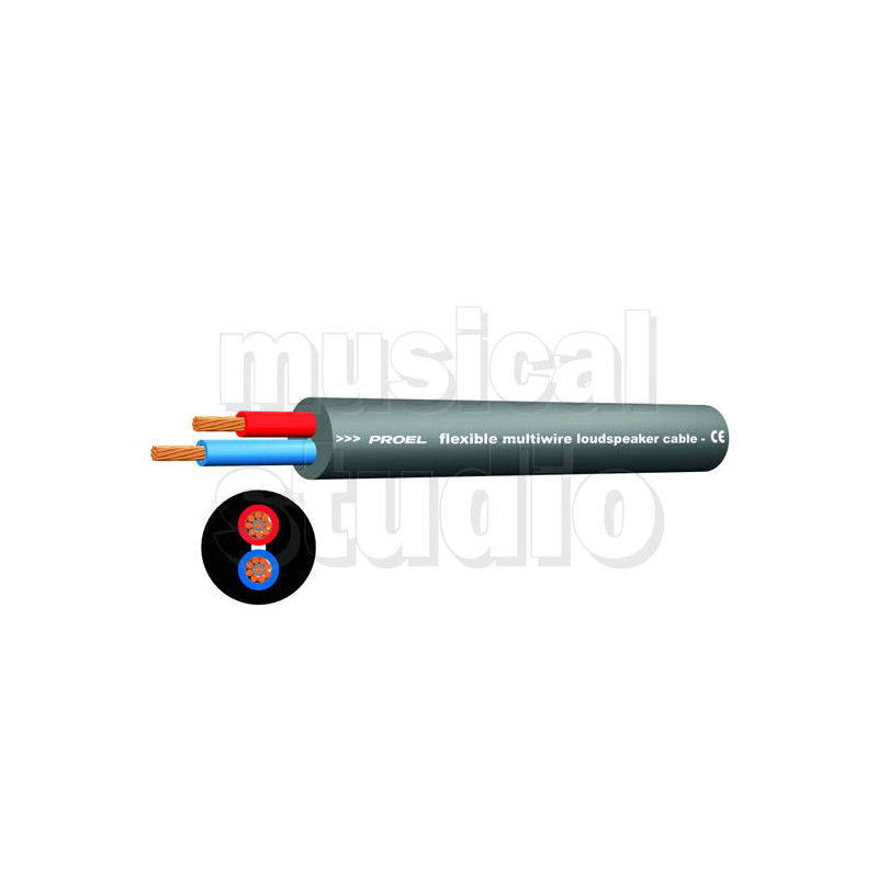 Cavo flessibile a 2 conduttori twistato per casse acustiche prezzo al metro SCHEDA TECNICA Conduttori: Rame 14 AWG = 80x0.25 mm (4.00 mm²) Isolamento: PVC ø 4.00 mm Guaina: PVC flessibile 60 shore ø 11.00 mm Resistenza conduttore: 4.5 Ohm/Km @ 20°C Capacità conduttore/conduttore: 116 Pf/mt @ 1 KHz Temperatura di esercizio: -20°C / +70°C Tensione di lavoro: 300 / 500 V Raggio minimo di curvatura: 10x su tutto il diametro Peso: 202.40 Kg/Km Colori disponibili: Nero Note: Fabbricazione&Controlli: rispondente alla normativa CEI 20-20 Campi di applicazione: Connessioni audio