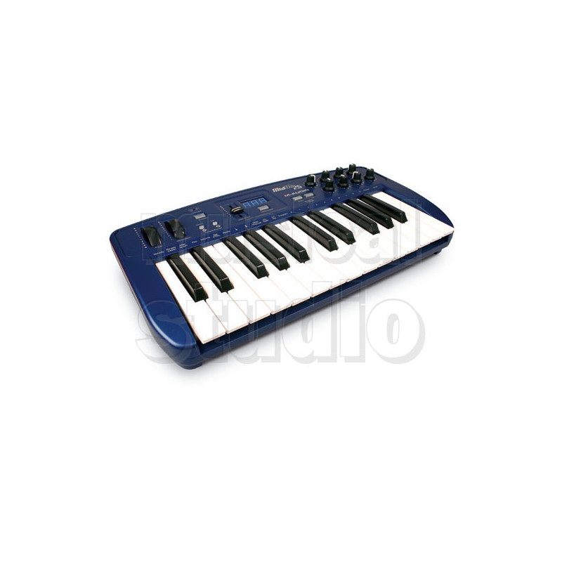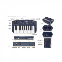M-AUDIO MIDAIR 25 Tastiera/Controller MIDI e USB wireless a 2tasti Oggi la tecnologia wireless e molto diffusa - e ora anche la tastiera puo essere wireless (senza fili). Se si e pronti a tagliare i fili o salire sulla ribalta, il nuovo controller MIDI USB wireless MidAir2rappresenta la risposta alle proprie aspettative. Sono state prese tutte le funzionalita del leggendario Oxygene inserite in un controller wireless altrettanto semplice da utilizzare. Completo di 2tasti sensibili alla velocita, manopole MIDI assegnabili, 1memorie (per un totale di 8parametri controllabili al volo), ruote modulation e pitch bend, pulsante sustain assegnabile, LCD a tre cifre ed altro ancora, il nuovo MidAir-2consente di controllare soft synth, DAW e strumenti MIDI standard con tutta la liberta offerta dal design wireless. Alimentato tramite l'alimentatore da 9V incluso o con batterie standard (anch'esse incluse), il MidAir 2e uno straordinario strumento sia per lo studio di registrazione sia per il palcoscenico. MidAir 2significa nessun cavo USB,.nessun cavo MIDI, nessun cavo di alimentazione*. Nulla! Tastiera e ricevitore MIDI incluso - entrambi senza fili, con sistema di trasmissione a 2,GHz - garantiscono un efficace campo di azione di 1metri, con la stessa costante risposta in tempo reale (a bassa latenza) dei controller dotati di cavi. Con MidAir 25, i musicisti non sono piu ancorati ad un computer host o un rack di apparecchiature posto dietro le quinte. CARATTERISTICHE TECNICHE: controller MIDI USB wireless dotata di trasmettitore MIDI 2tasti sensibili alla velocita ad azione synth con tasti standard manopole assegnabili via MIDI pulsanti di cambio programma pulsanti su/giu preset e ottava pulsante sustain assegnabile slider dati assegnabile ruote pitch bend e modulation ingresso per pedale di sustain da ¬" display LED a cifre presa MIDI Out 1memorie non-volatili le manopole sono completamente programmabili su numero di controller e canale MIDI pulsante sustain on/off tastiera/controller alimentata tramite alimentatore a 9V c.c. o batterie interruttore di accensione/spegnimento della tastiera/controller Kesinton lock ricevitore MidAir dotato di porta USB 1.e ingresso/uscita MIDI, alimentazione via bus USB o alimentatore c.c. opzionale compatibilita nativa con sistemi operativi Windows XP e Mac OS X include il software di produzione musicale Ableton Live Lite per poter iniziare immediatamente a realizzare la propria musica