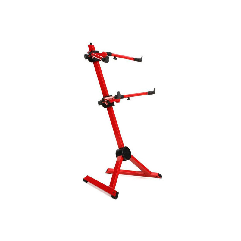 Struttura per tastiera a doppio livello. Sia la base che i braccetti di supporto si ripiegano su se stessi, dando al supporto massima compattezza. I braccetti sono regolabili in 11 posizioni d'altezza, da 66 a 112 cm. Si estendono in profondità e si possono posizionare a 5 diverse inclinazioni.