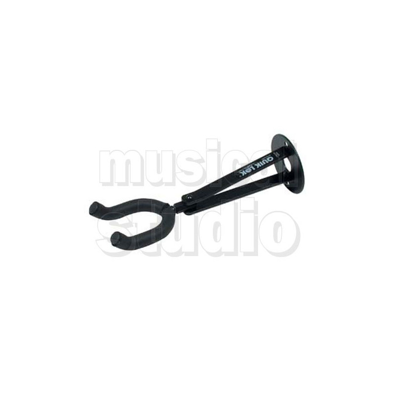 Un modo sicuro e salvaspazio di appendere le chitarre Costruzione solida tutta in acciaio Ganci snodati adattabili a palette di qualsiasi forma Sostegno ricoperto di morbida gomma protegge il manico Descrizione Prodotto: Sostegno a muro per chitarra con forcella curva e supporto extralungo La forcella può ruotare di 180° ed essere regolata a destra o sinistra di un angolo qualsiasi Caratteristiche: Profondità supporto: 24.5 cm Profondità totale: 33 cm Larghezza: 9 cm Diametro del montante: 8.5 cm Carico massimo*: 12.5 Kg *(se fissato saldamente a muro) Peso: 0.55 kg