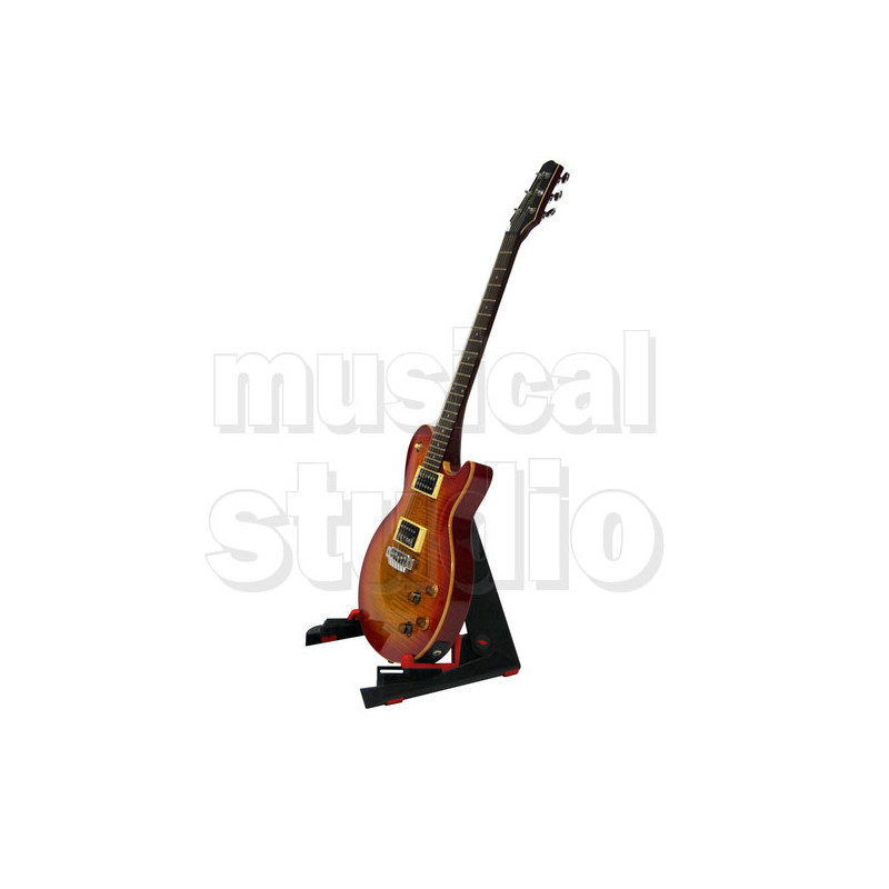 NUOVO SUPPORTO UNIVERSALE PER CHITARRA / BASSO Nuovo supporto universale per chitarra / basso, realizzato con materiali plastici di alta qualità che ne assicurano un'estrema stabilità. Questo supporto è dotato di un innovativo meccanismo di chiusura di semplice utilizzo, che gli permette di essere richiuso completamente per un facile trasporto. Le parti di contatto con lo strumento, sono ricoperte in morbido silicone a protezione della finitura dello strumento stesso. Caratteristiche •[Campi di applicazione: Supporto universale per chitarra da pavimento] •[Peso:440 kg ] •[Colori disponibili: Nero opaco con particolari di colore rosso]