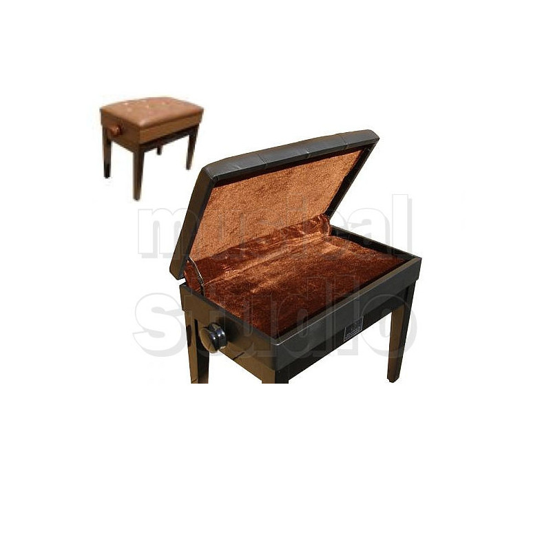 Panchetta pianoforte Chesterfield con cassetto regolabile in altezza Regolabile in altezza: da 47 a 55cm Copertura: vinyl narrone con bottoni Peso: 7,6Kg Colore: palissandro Finitura: lucida