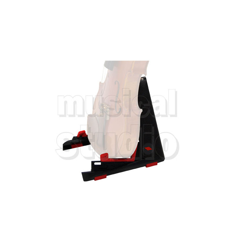 SUPPORTO PER VIOLINO VIOLA E UKULELE Supporto universale per violino, viola, ukulele, realizzato con materiali plastici di alta qualità che ne assicurano un'estrema stabilità. Questo supporto è dotato di un innovativo meccanismo di chiusura di semplice utilizzo, che gli permette di essere richiuso completamente. Le parti di contatto con lo strumento sono ricoperte in morbido silicone a protezione della finitura dello strumento stesso. Caratteristiche principali •Supporto per Violino, Viola, Ukulele •Carico massimo: 8kg •Peso:1,80kg •Colore: Nero opaco con parti rosse