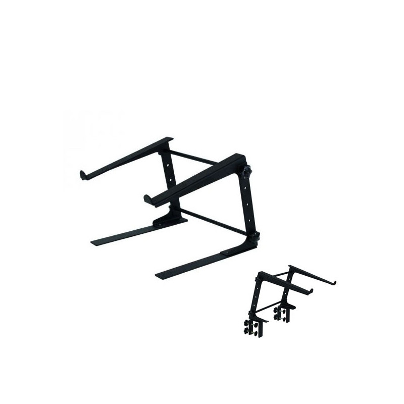 Supporto da Tavolo per Notebook Indispensabile supporto per organizzare al meglio la tua postazione di produzione musicale. Ideale per posizionare laptop portatili, tastiere, controller midi, Cdj. • Supporto robusto e stabile, in metallo • Superficie: 29 x 27 cm (è ovviamente possibile utilizzare il supporto con apparecchi di dimensioni maggiori) • Fermo frontale • Può essere appoggiato sul piano scrivania, oppure utilizzando gli appositi fermi per agganciarlo al tavolo • Ripiano leggermente angolato (dislivello di circa 6.5cm) • Altezza minima 23 cm, altezza massima 37 cm • Carico massimo supportato: 10kg