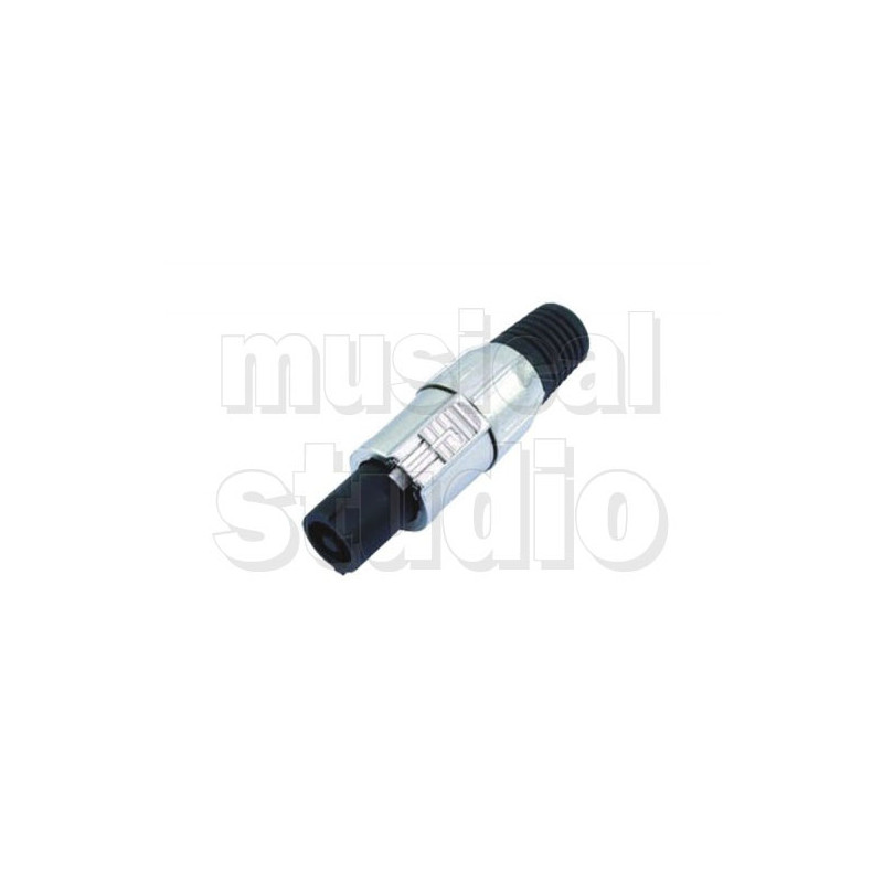 Connettore Speakon Femmina 2 Poli Ideale per una connessione sicura tra amplificatore e casse. •2 Poli •Fermacavo che limita i piegamenti del cavo •Innesto a baionetta •Rotazione con blocco di sicurezza anti-sgancio •Contatto elettrico solo a bloccaggio avvenuto •Design elegante ed ergonomico •Chassis robusto, duraturo ed affidabile •Filettatura interna protetta contro eventuali danni