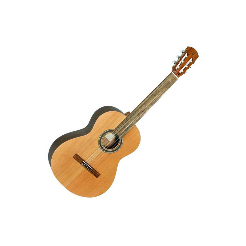CHITARRA CLASSICA NATURALE Uno strumento di qualità consigliato a chi si avvicina alla chitarra classica e desidera uno strumento dalle buone doti estetiche e sonore. I legni che la compongono e le rifiniture le conferiscono qualità di suono e maneggevolezza che contrastano con un prezzo molto abbordabile. Caratteristiche •Tavola: Cedro massello •Fondo e fasce: Wenge •Tastiera e ponte: Mongoy •Finitura: Naturale •Corde: D'Addario Pro Arte •Accessori: Borsa Ritter inclusa •3 Anni di Garanzia (conservando il tagliando di garanzia rosso)