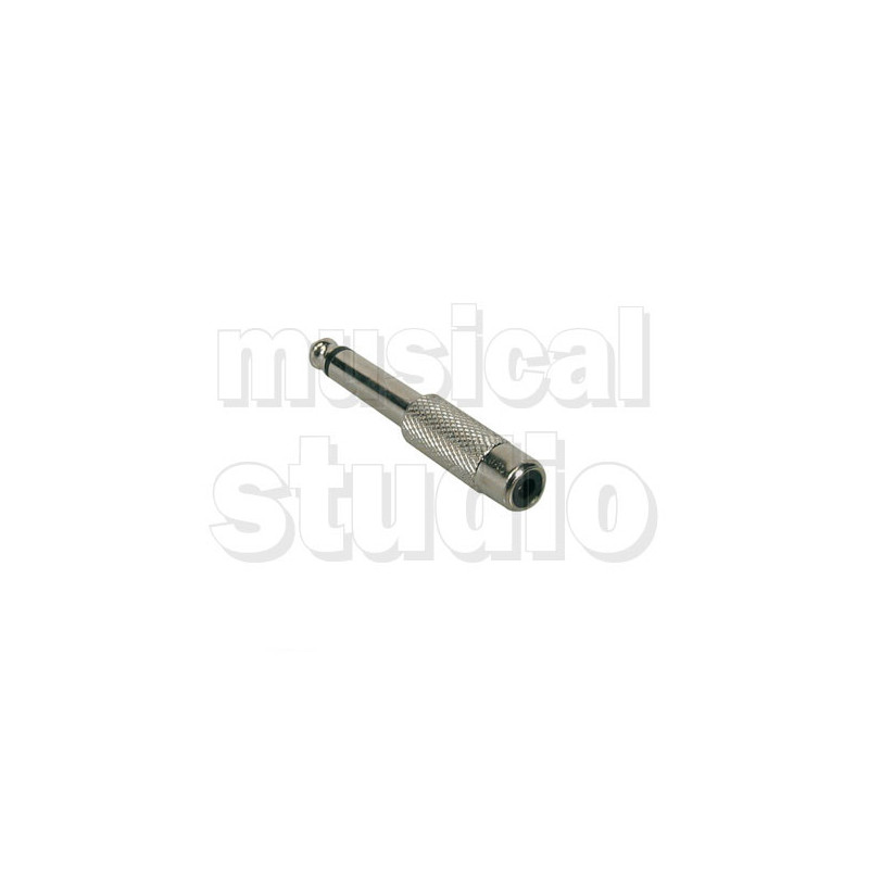 Adattatore in metallo: presa RCA -> spina jack mono Ø 6.3 mm.