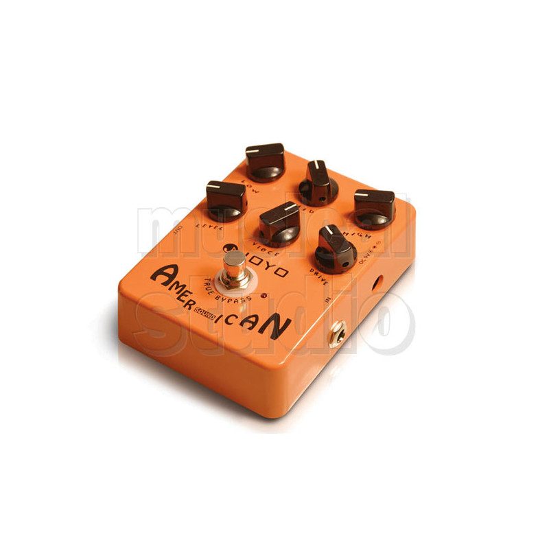 AMERICAN SOUND Fender '57 Deluxe Amp Simulator. Overdrive-Boost. Ottimi risultati nel pulito, distorto, e tutti i suoni intermedi. Può essere collegato direttamente al mixer o ad unità di registrazione. Controlli: High, Mid, Low, Level, Drive e Voice. True Bypass. Batteria 9V (inclusa) e connessione per alimentatore 9V polo negativo. (connettore tipo Boss). Telaio in alluminio verniciato a forno. Dimensioni: 11.8(L)X8.7(H)X3.8(W) cm