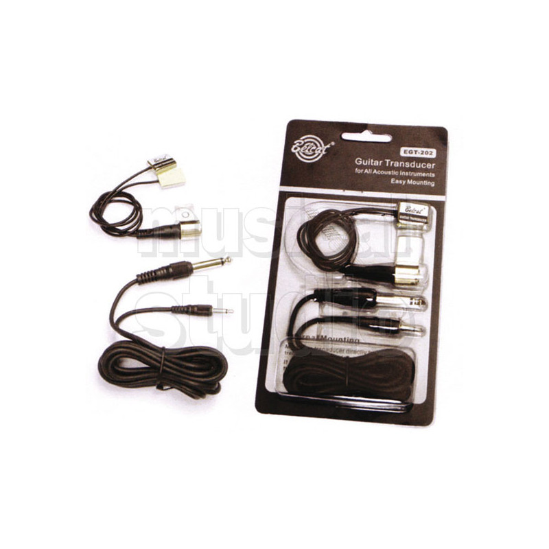 Double Piezo contact transducer which is ideal for both classic and acoustic guitars. Transduceris connected to a surface mount 3.5 (F) plug. Comes with 7 foot 3.5 mono (M) to 6.5 mono (M) cable.